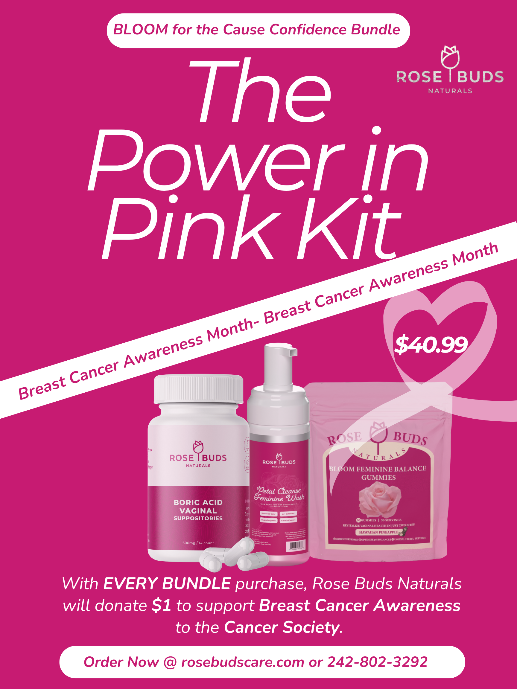 With EVERY BUNDLE purchase, Rose Buds Naturals will donate $1 to the Cancer Society in support of Breast Cancer Awareness.